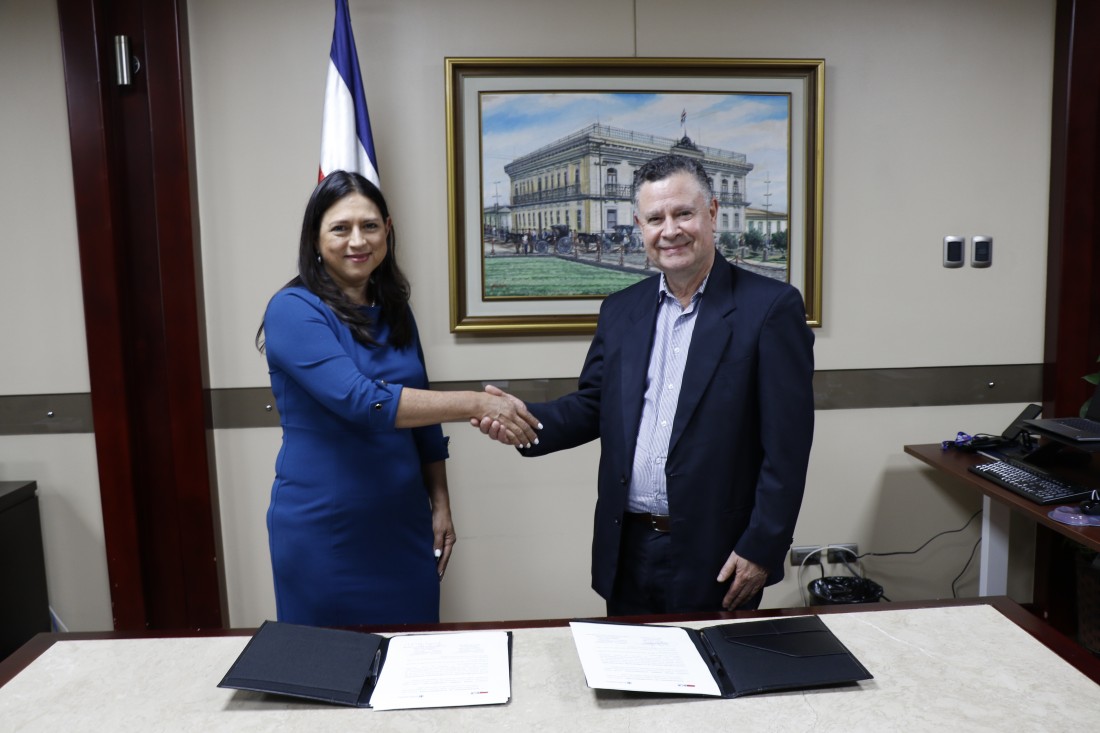Cinthya Arias Presidenta del Consejo Directivo de la SUTEL y Douglas Soto Leitón, Gerente General del BCR.