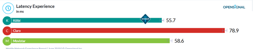 Kölbi 55.7, Claro 78.9 y Movistar 58.6. Cantidad de respuesta en milisegundos.