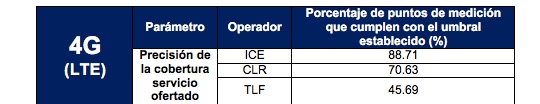 Con respecto a la tecnología 4G o LTE estos son los resultados obtenidos: