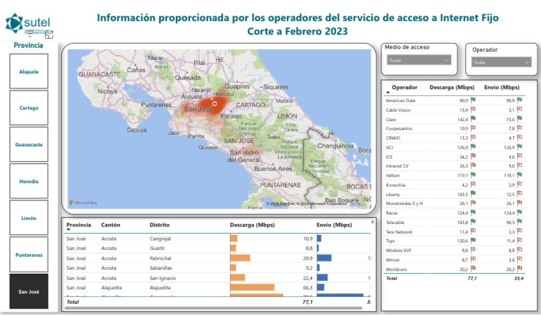 La Superintendencia de Telecomunicaciones (SUTEL) pone a disposición de los usuarios una nueva herramienta, un Mapa de Banda Ancha de Costa Rica, un instrumento innovador y detallado que refleja el estado actual y la distribución de los servicios de Internet fijo en todo el país.