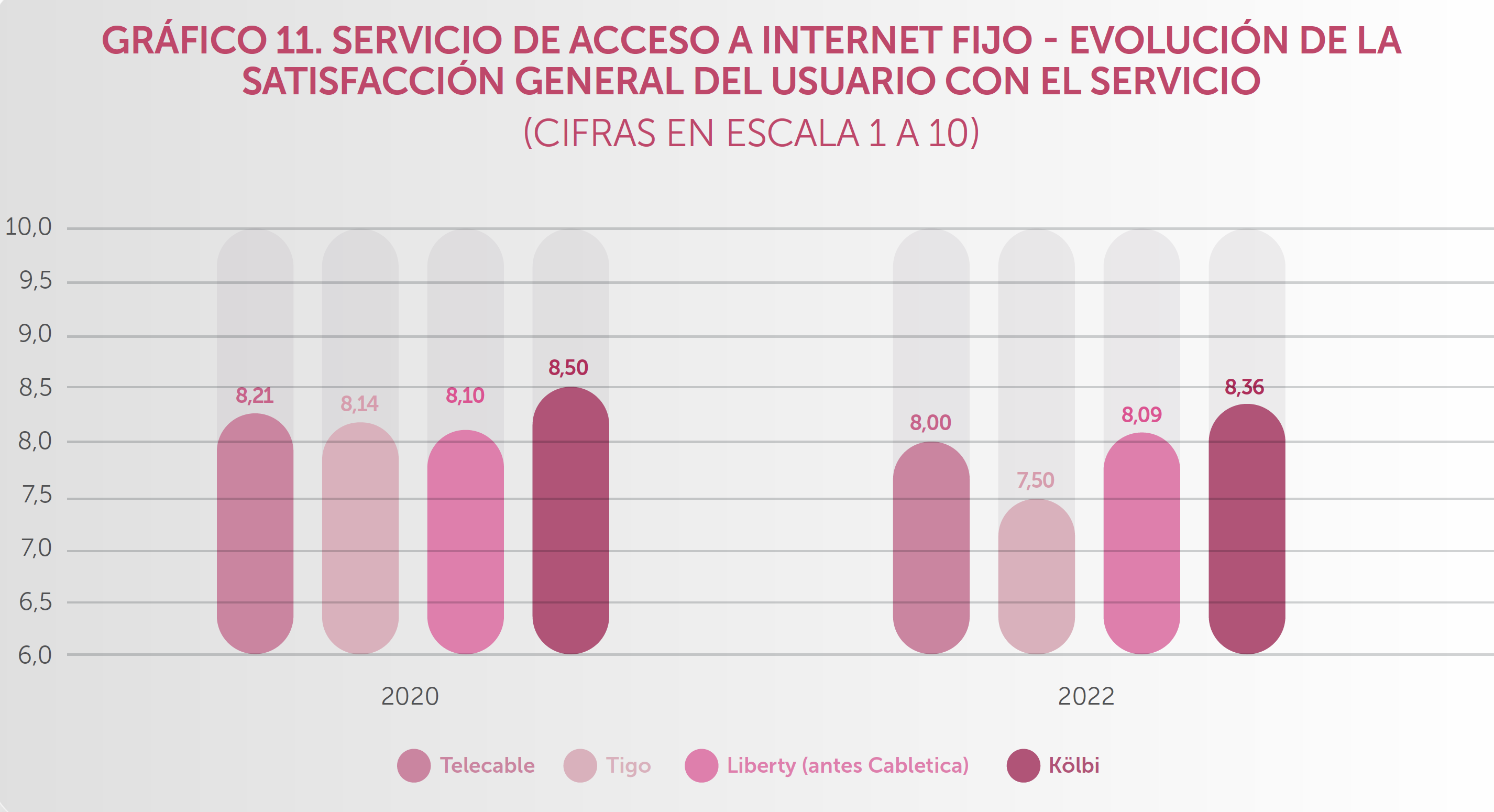 En el 2022 en una escala de 1 a 10 los usuarios calificaron con 8,72 a Claro, 8,66 a Kölbi y con 8,65 a Liberty.